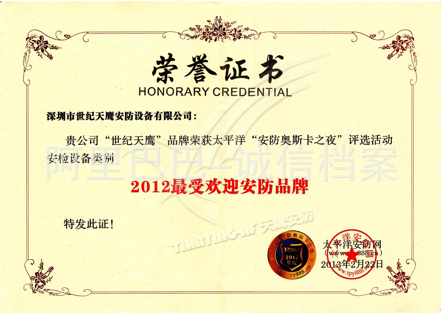 | 發(fā)證機(jī)構(gòu): | 太平洋安防網(wǎng) | 發(fā)證時(shí)間 : | 2013-02-22 |