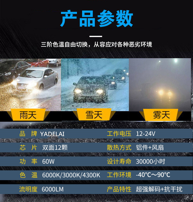 【色 溫】:6000K/3000K/4300K