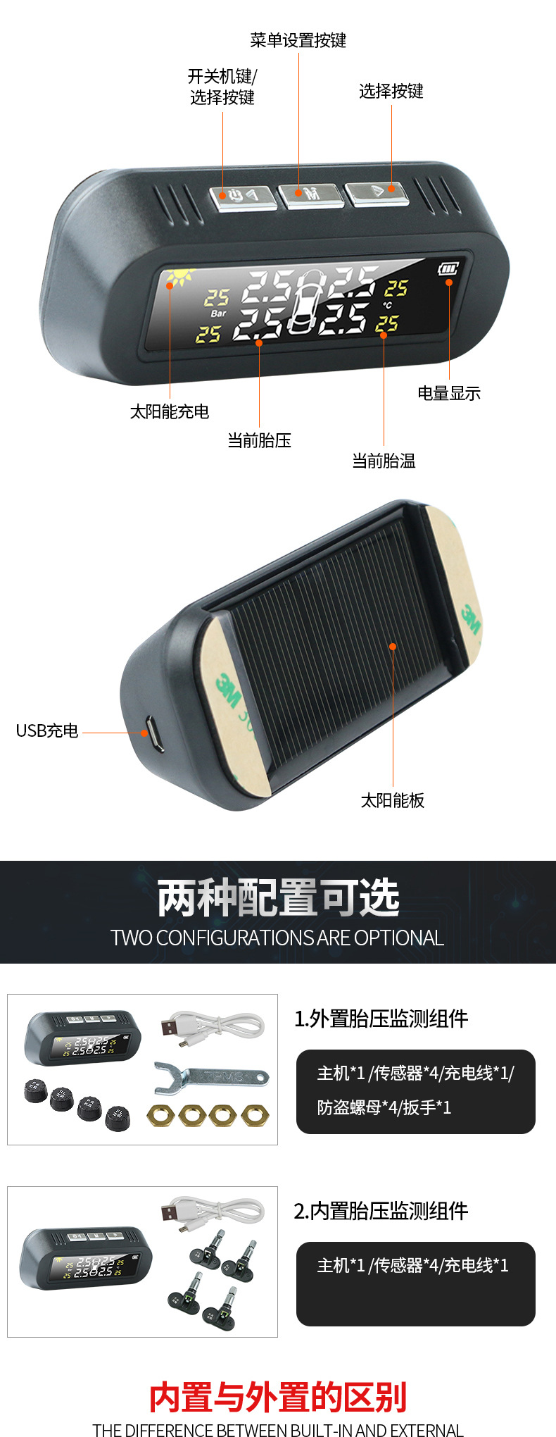 太陽能胎壓監(jiān)測(cè)汽車通用輪胎檢測(cè)高精度無線胎壓監(jiān)測(cè)系統(tǒng)TPMS定制 詳細(xì)信息 品牌