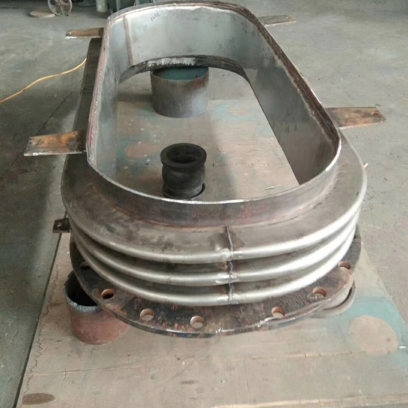 補償器采用矩形截面,圓角波形,管道中單個膨脹節(jié)承受二維方向位移。由2個膨脹節(jié)組成的肘接管道可承受三維方向位移。矩形圓角金屬波紋膨脹節(jié)有全高、半高型、按照煙道尺寸,應力應變要求用戶可多波節(jié)選用。
