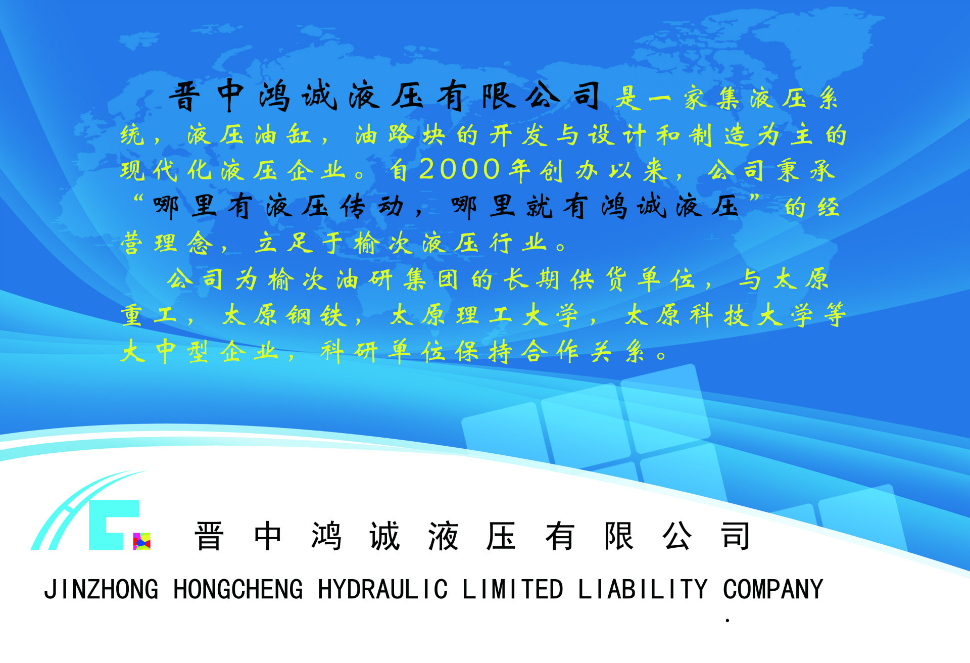 晉中鴻誠液壓有限公司是榆次工業(yè)園區(qū)專業(yè)生產(chǎn)液壓泵、液壓閥、液壓油缸及液壓系統(tǒng)的企業(yè),擁有雄厚的技術實力,先進的技術實力,完善的檢測手段。多年來為煤炭、石油、化工、冶金、橡樹、工程機械等行業(yè)提供液壓系統(tǒng)解決方案與產(chǎn)品。