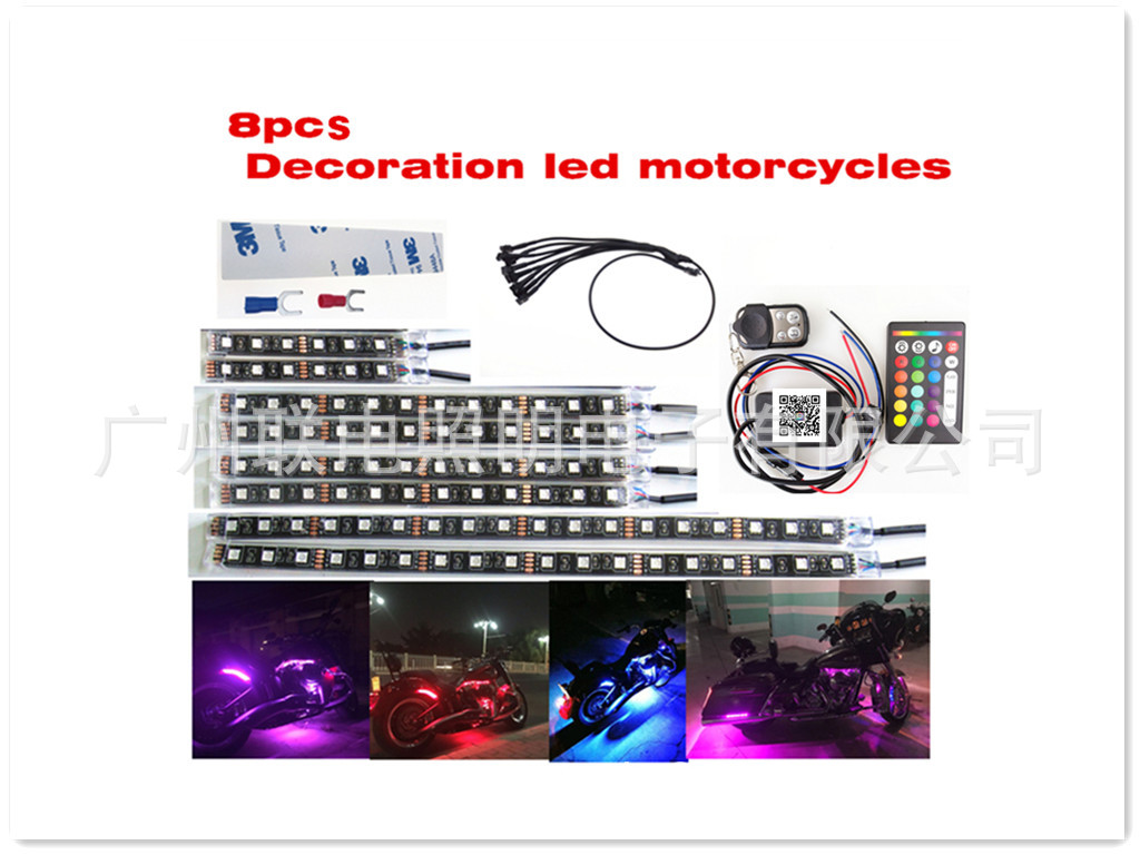 » 一拖八藍牙+RF遙控音樂底盤燈 摩托LED音樂防水氛圍燈