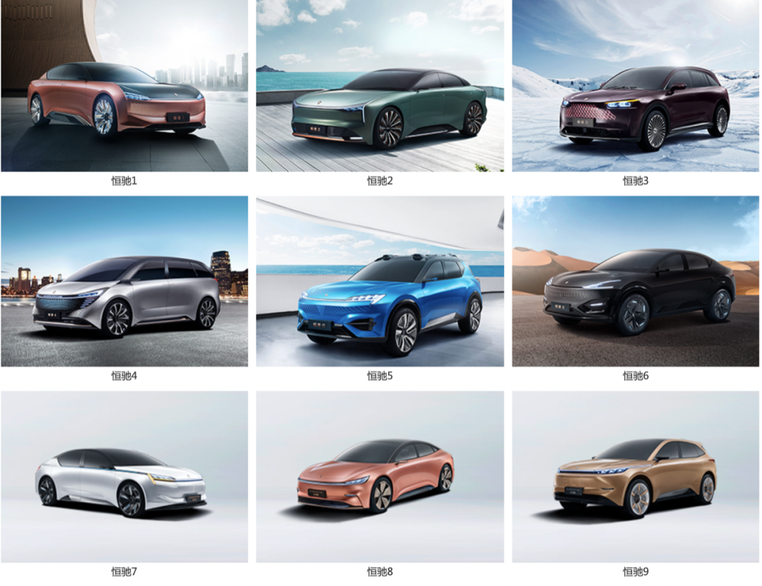 恒馳系列9款車型,圖源恒大官網(wǎng)截圖
