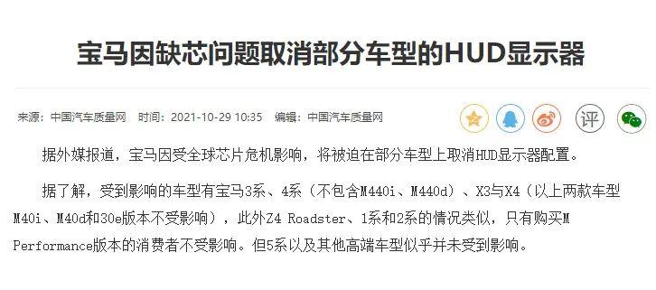 結(jié)合此前的消息來(lái)看,此次寶馬X1取消HUD抬頭顯示和哈曼卡頓音響應(yīng)該為芯片短缺所致。