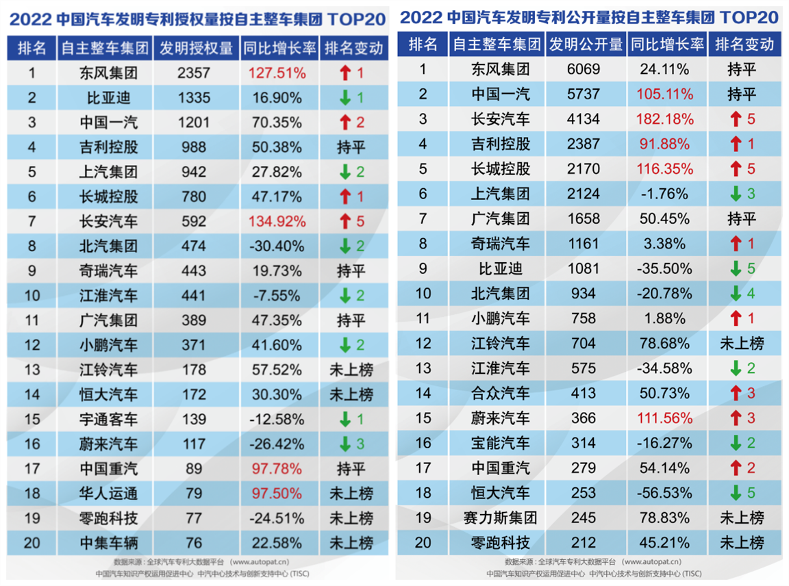近期,中汽中心發(fā)布了《2022年中國(guó)汽車專利數(shù)據(jù)統(tǒng)計(jì)分析》,在自主整車集團(tuán)發(fā)明專利公開量和授權(quán)量中,東風(fēng)公司均位居榜首,獲得發(fā)明專利“雙料冠軍”。