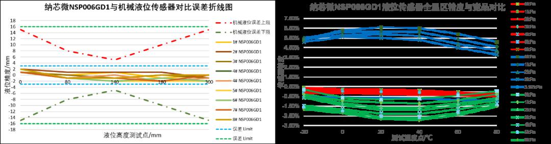 從具體參數(shù)對(duì)比來(lái)看,在6kPa量程,納芯微NSP006GD1全量程精度偏差實(shí)測(cè)結(jié)果在2毫米以?xún)?nèi),機(jī)械式傳感器在中間水位可以做到5毫米左右測(cè)量誤差,而高水位和低水位測(cè)量誤差都會(huì)加大,大約在15毫米左右。與同類(lèi)MEMS氣壓式水位傳感器芯片相比,納芯微NSP006GD1實(shí)測(cè)全溫區(qū)精度也顯著優(yōu)于美國(guó)、日本等同類(lèi)公司產(chǎn)品。