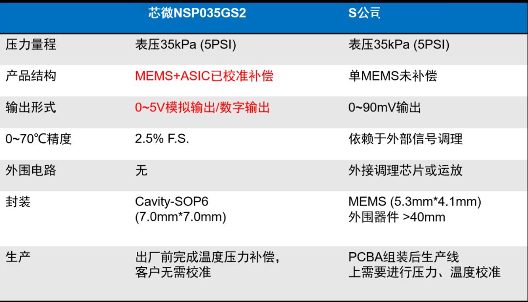 圖:納芯微家電表壓傳感器參數(shù)對(duì)比