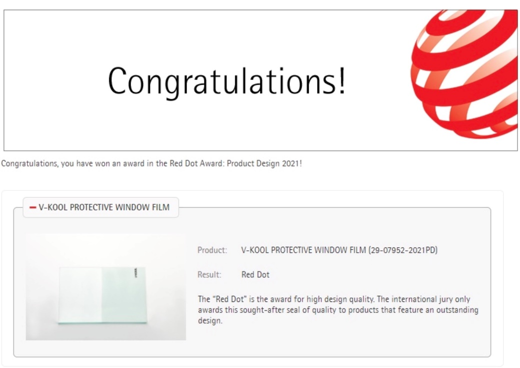 作為全球設(shè)計界負(fù)盛名且具影響力的獎項之一,紅點獎評選的標(biāo)準(zhǔn)極為苛刻。此次獲獎的VP70隔熱防護車膜,憑借品質(zhì)與創(chuàng)新設(shè)計贏得好評和高度認(rèn)可。