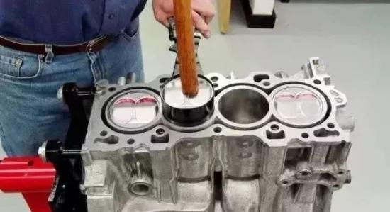 裝配要點:將活塞連桿裝入氣缸時,需要按照活塞和連桿上的標記選擇正確的朝向。頂入活塞的過程中,連桿大頭端應始終對著曲軸上的連桿軸頸,以免發(fā)生錯位,或連桿螺栓損傷軸頸。