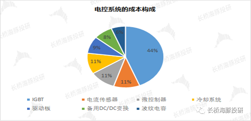 IGBT功率模塊作為逆變器的核心組件,同時也是電控系統(tǒng)的重要組成部分,一般占整個電控系統(tǒng)成本的40%左右。由于IGBT在電控中起關(guān)鍵作用,隨著電動汽車的普及,直接帶動了IGBT在新能源汽車市場的放量。