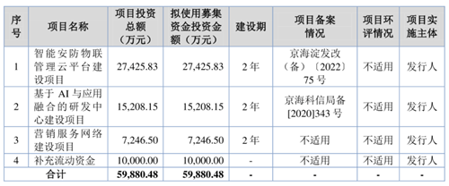 招股書顯示,本次藍(lán)色星際擬募資5.99億元,將用于智能安防物聯(lián)管理云平臺建設(shè)項目、基于AI與應(yīng)用融合的研發(fā)中心建設(shè)項目、營銷服務(wù)網(wǎng)絡(luò)建設(shè)項目等。