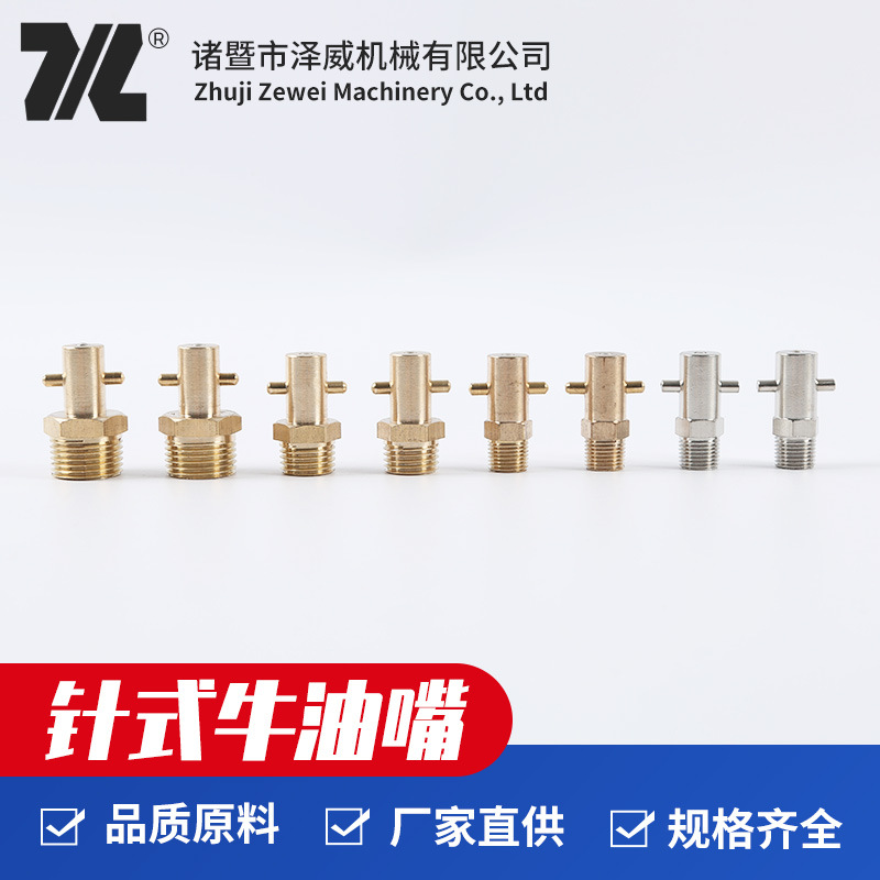 - 油嘴有銅油嘴,不銹鋼油嘴和鐵油嘴,其中鐵油嘴可鍍鋅,鍍鎳和鍍銅等。