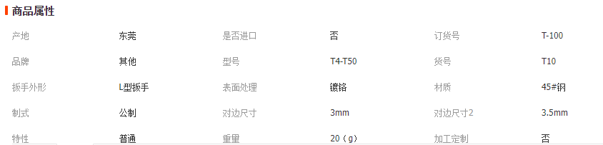 六角梅花扳手 T3 T4 T5 T6 T 8 T10 T15 T20 T25 T30 T40