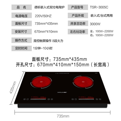 德昕TSR-3005C嵌入式雙頭電陶爐靜音 雙灶雙爐電陶爐家用