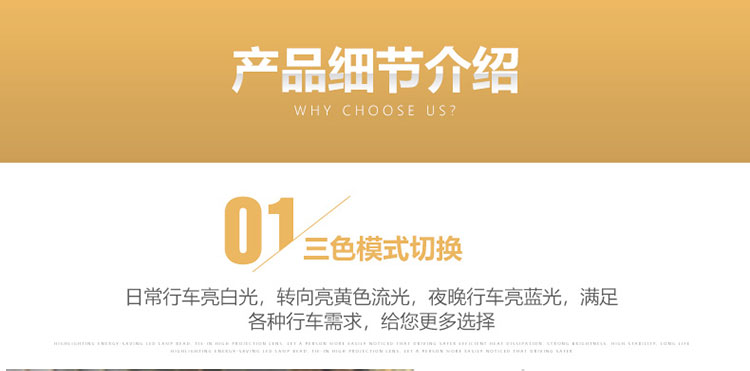 【亮燈模式】: ①行車白光+轉(zhuǎn)向黃光流水