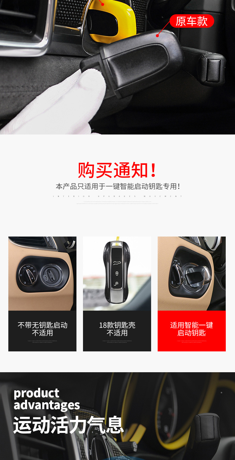 適用于保時(shí)捷一鍵啟動(dòng)鑰匙Macan卡宴panamera內(nèi)飾改裝啟動(dòng)鑰匙殼