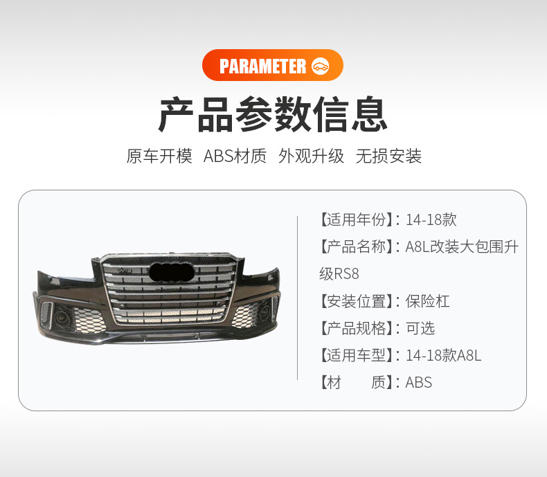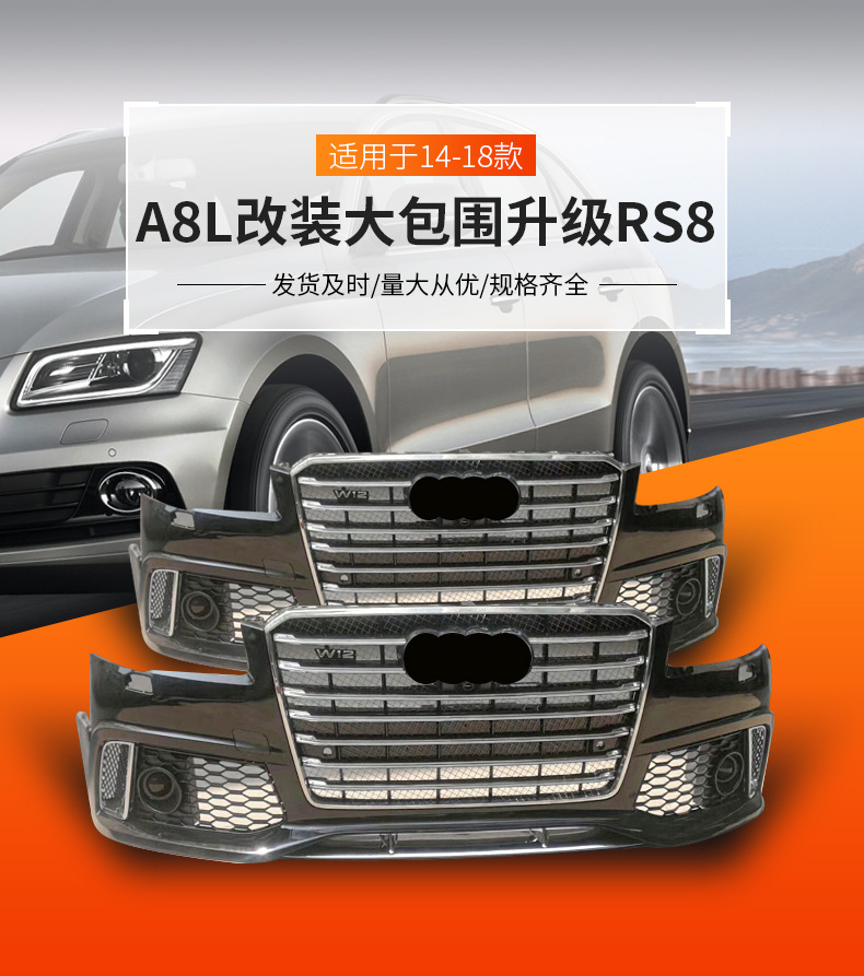 適用于14-18款A(yù)8L大包圍升RS8前保險(xiǎn)杠W12中網(wǎng)D4改D5前包圍格柵