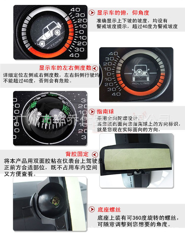 車(chē)載指南球 平衡儀水平儀汽車(chē)坡度儀三合一
