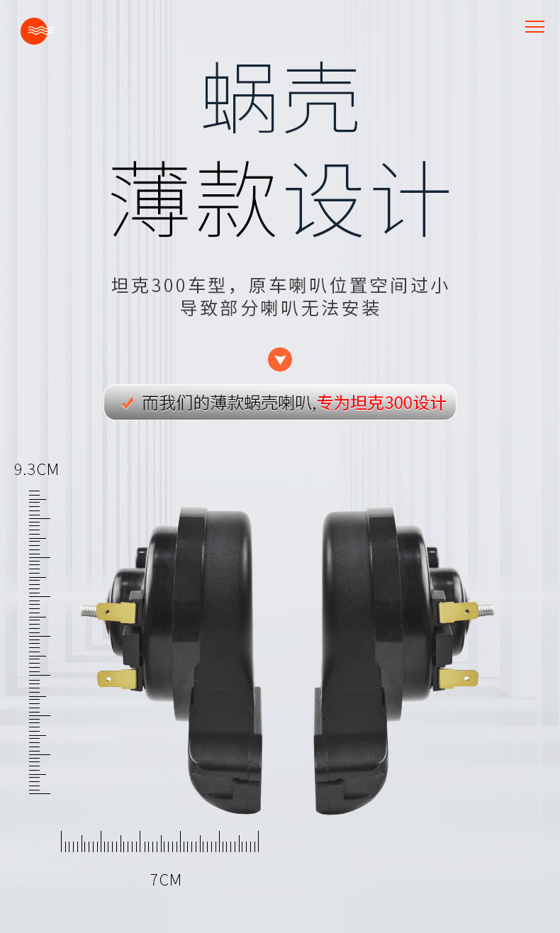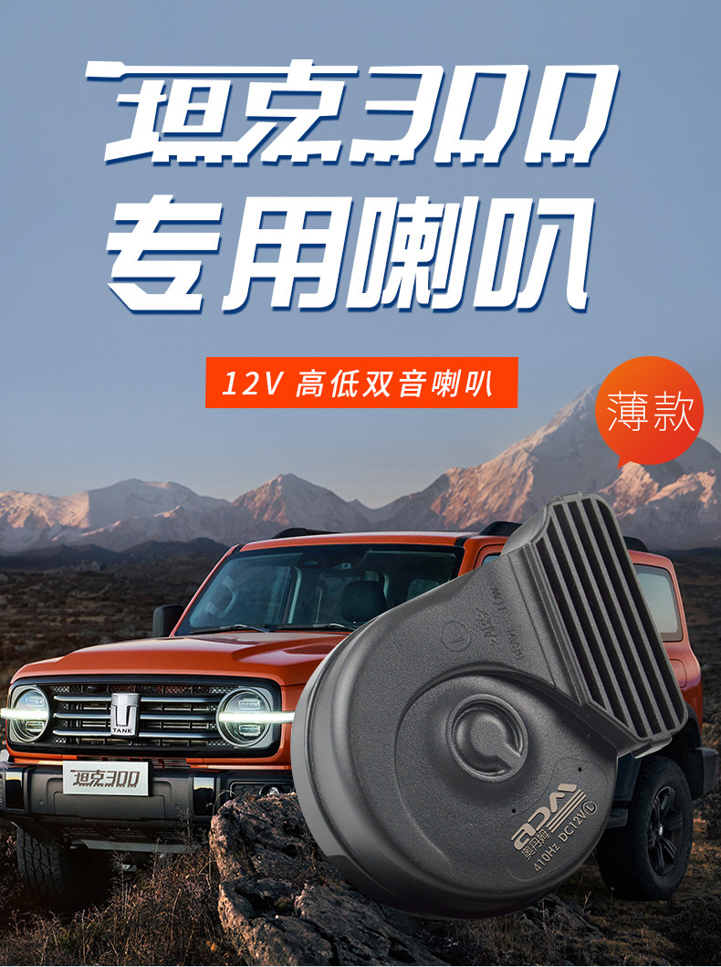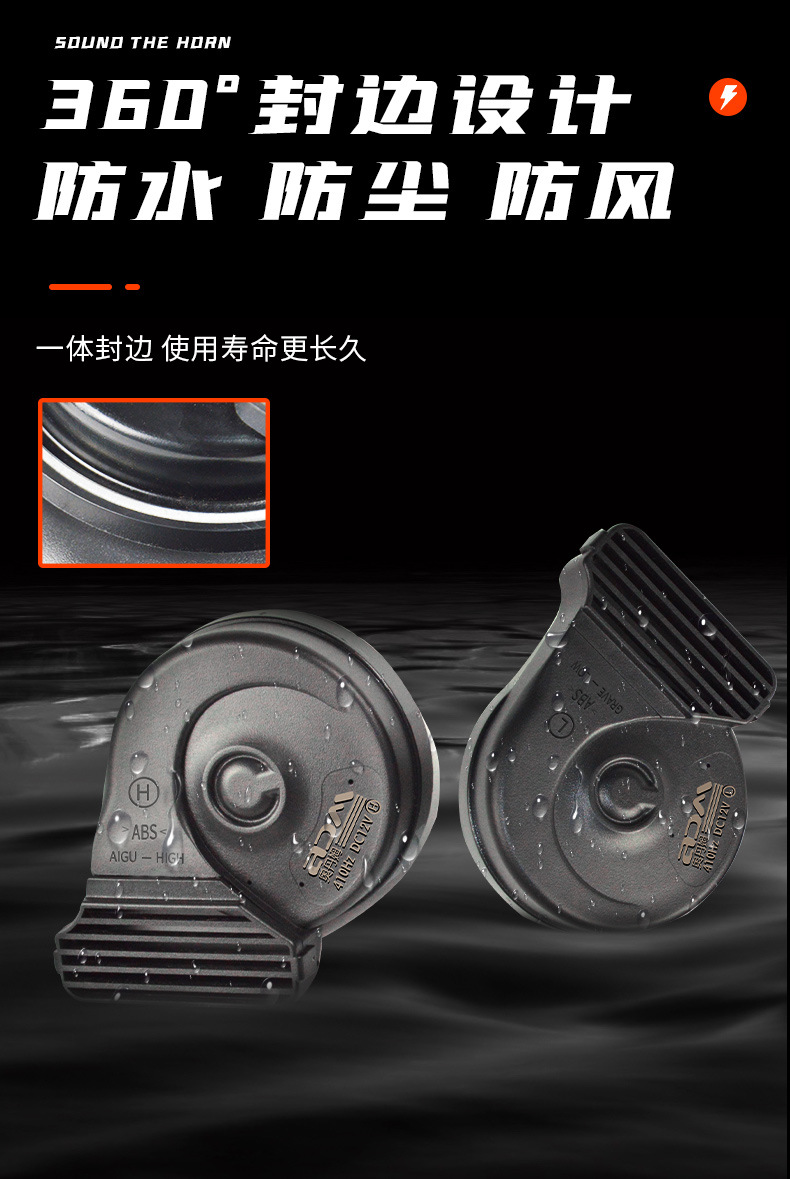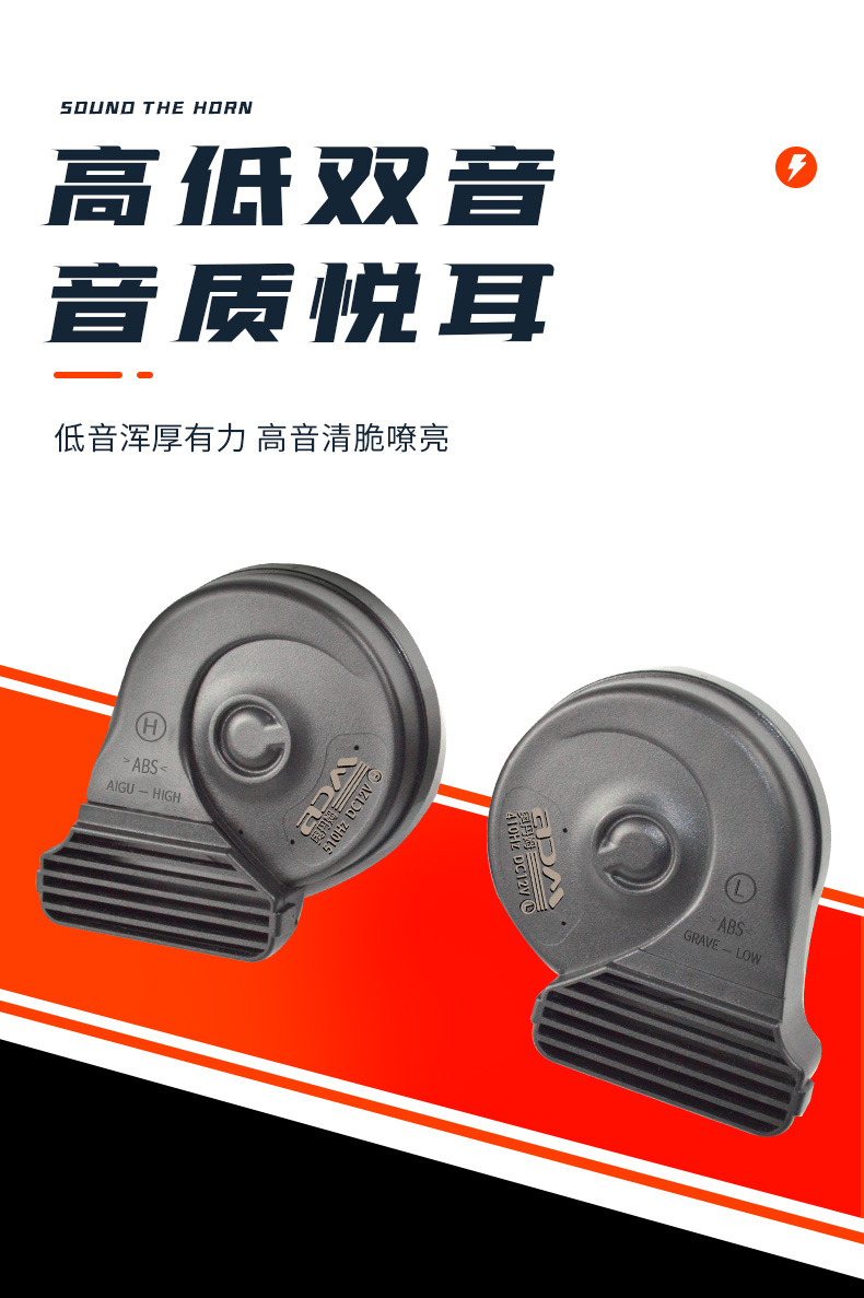 汽車蝸牛喇叭12V薄款通用摩托車改裝鳴笛巨響防水高低雙音新款