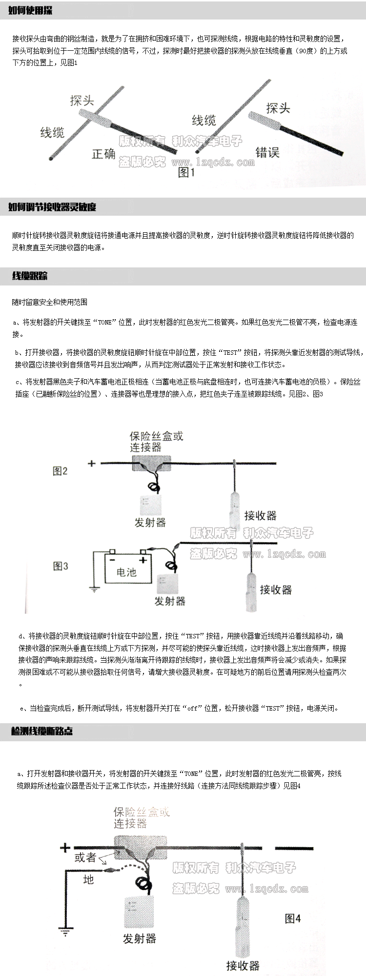 APPLICATION: Checking for short circuit,Locating open circuit,Wire identification, Wire tracing,etc.