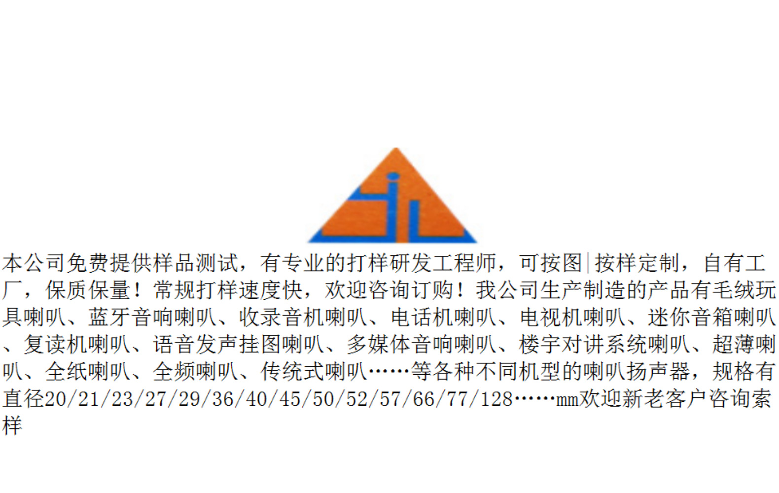 腔體喇叭(5) 電子煙咪頭(1) 橢圓形喇叭(3) 圓形內外磁喇叭(67) 長方形內外磁喇叭(15) 方形內外磁喇叭(24) 防水喇叭(3) 耳機小喇叭(14) 有源一體分體蜂鳴器(4)